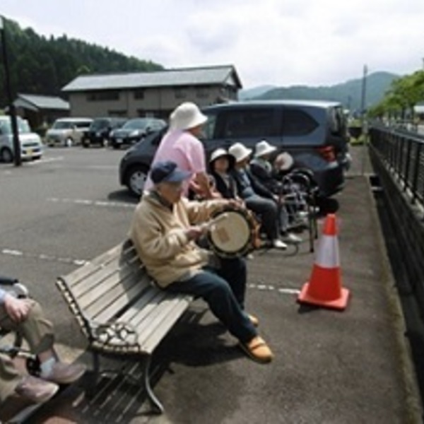 スポーツを見るのが好きなご利用者の方々が駐車場内から、