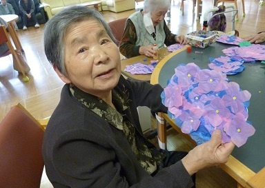 来荘されますと、看護職員による健康チェックを行います。その後、お風呂へ入り、ご利用者様に合わせた創作活動等を行います。