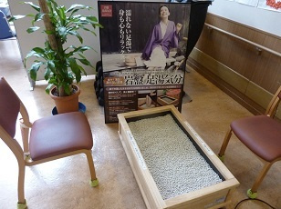 ことぶき荘デイサービスセンターでは、マッサージチェア、岩盤足湯等のリラクゼーションコーナーを設けています。機能訓練やレクリエーション後の一休み等に、どうぞお気軽にご利用ください。