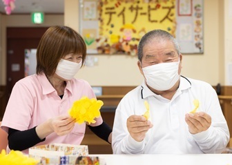 通所介護計画に沿って、送迎・食事の提供・入浴の介助・機能訓練・その他必要な介護サービスを提供します。また、利用者の皆様と一緒に手芸・おやつ作り・レクリエーション・健康体操などを楽しく行います。