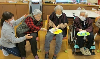 当デイサービスでは様々なレクリエーションや体操、季節の行事、おやつ作りなど楽しく豊かな時間を過ごして頂けるよう工夫をしています。